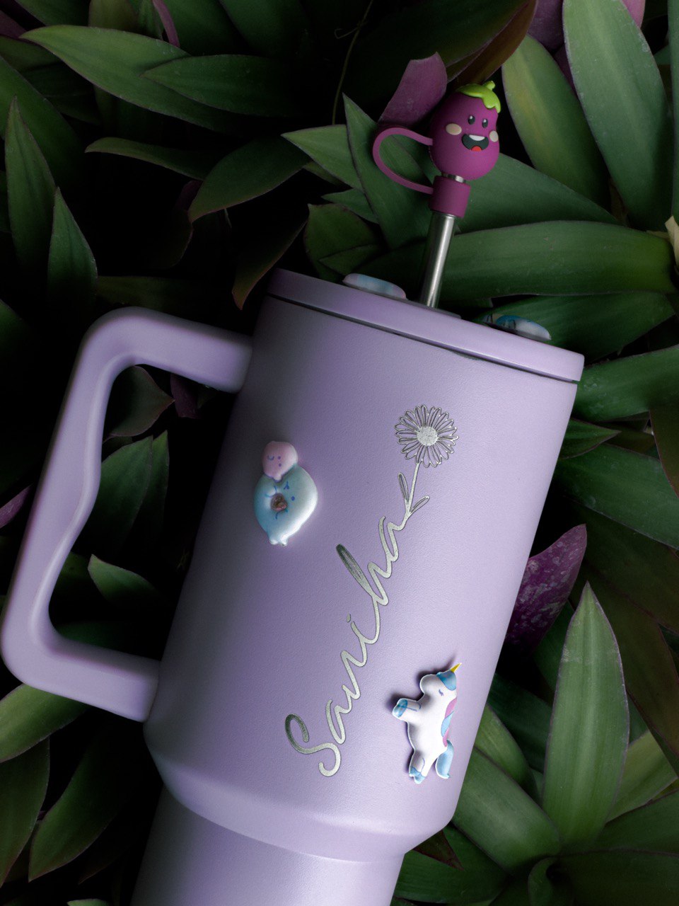 Flare 1200ml Custom Month Flower Insulated Tumbler with Straw , Lid & Cute Accessories - Personalized Chill Gift - Lavender Mist