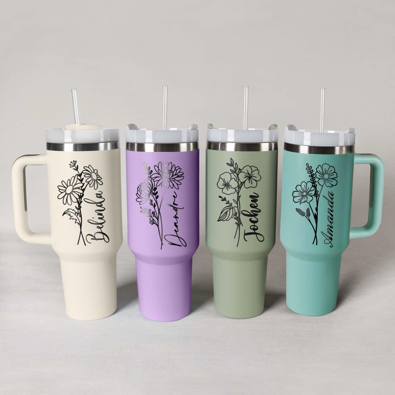Each month has a special flower that represents it, bringing positivity and good vibes. Our tumblers let you personalize with your birth flower and name, making every sip uniquely yours!
