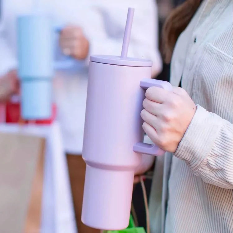 Take your drinks anywhere with Flare, the stylish and practical 40 oz stainless steel tumbler. Designed to keep beverages hot, cold, or iced for hours, it comes with a leak-resistant lid and reusable straw for easy sipping on the go. The ergonomic handle makes carrying effortless, and its slim design fits most car cup holders. Dishwasher safe and available in a variety of colors, Flare makes hydration convenient and fun every day.